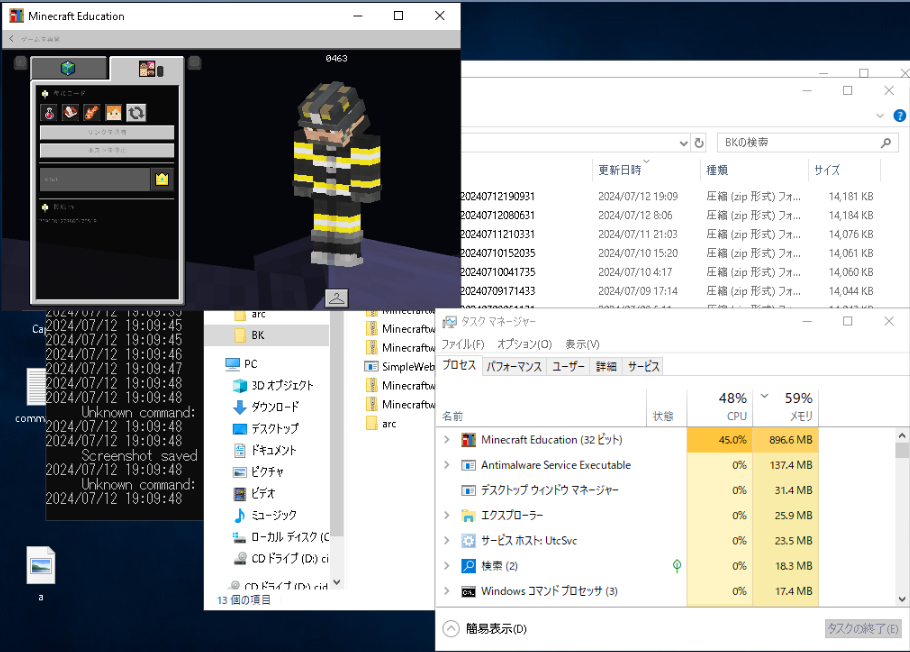 | #TOP_OF_THE_COMMANDS_FILE SLEEP,10000 CLICK,12,150 SLEEP,1000 CLICK,12,180 SLEEP,1000 CLICK,12,120 #each_12h GOTOEVERY,12,14 CAPTURE,.\ScreenCapture.png #sleep_1h SLEEP,3600000 GOTO,1 #backuplabel ZIP,C:\Users\Administrator\AppData\Roaming\Minecraft Education Edition\games\com.mojang\minecraftWorlds,C:\Users\Administrator\Desktop\BK\Minecraftworld GOTO,1 |