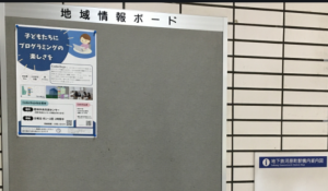 作成したポスターは、 市営地下鉄の駅改札付近 にある地域の情報掲示板に貼らせてもらうことに。申請書類に記載して。。。人通りの多い場所に掲示することで、より多くの方にイベント情報を届けられるはずです。